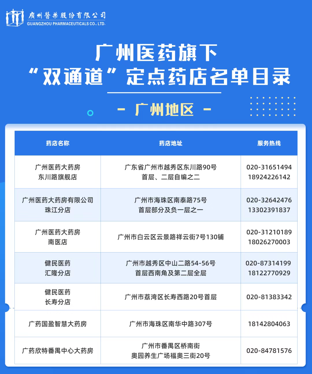作为广州市药品储备承储单位,广州医药积极参与本次“双通道”惠民行动中,为广大参保人的用药供应保障贡献“J9集团官方网站的责任和担当”。
